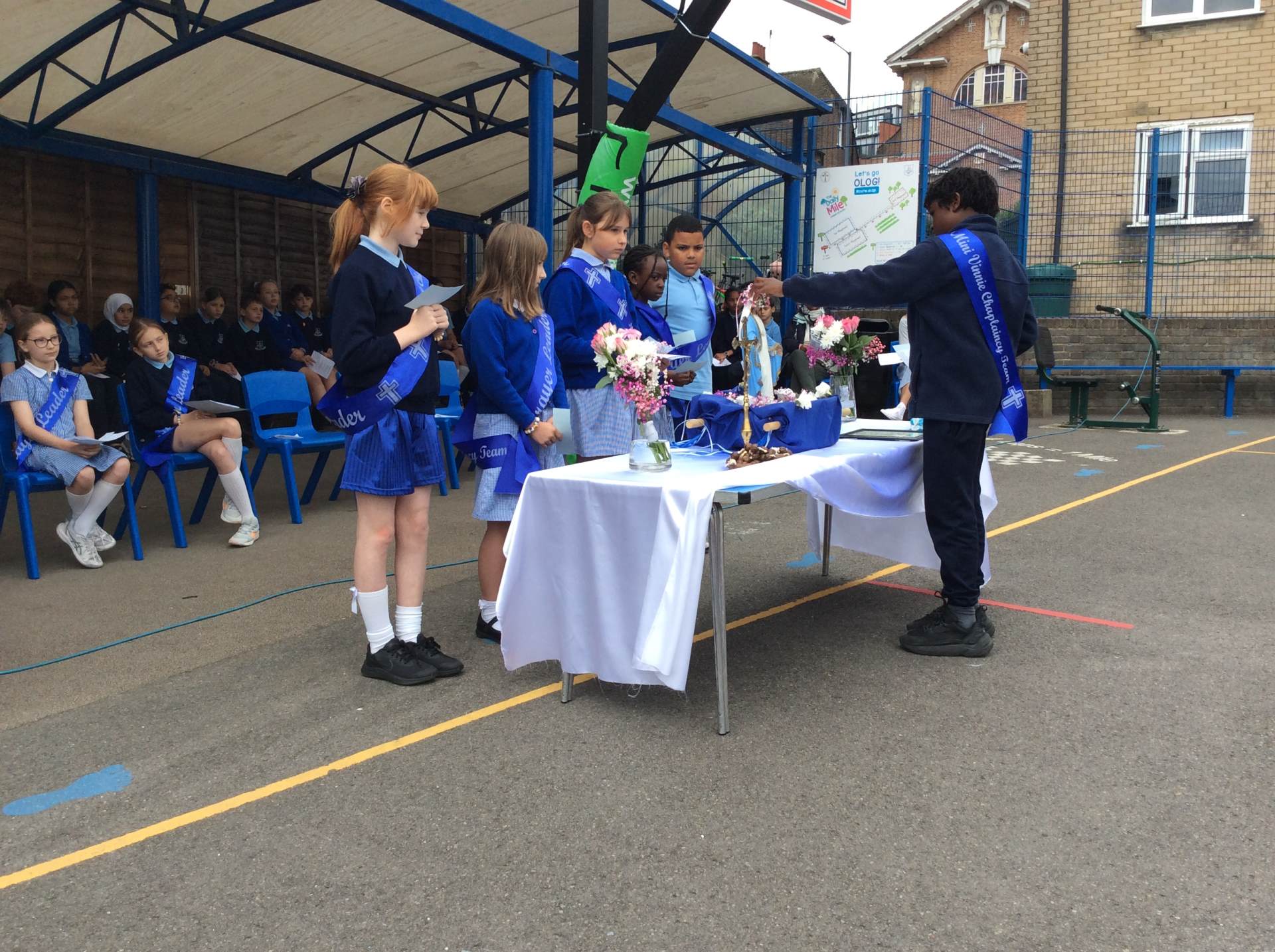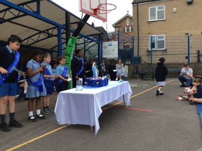 We celebrated Our Lady's feast day with the Junior School. We walked to the junior school and sang songs to Mary